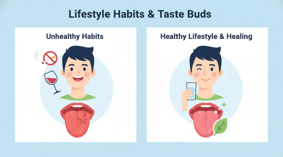 Your injured taste buds could be a cause for concern if you have been engaging in negative lifestyle habits. Overindulging in alcohol and smoking tobacco can worsen the damage. One thing is for sure: it will slow down healing.